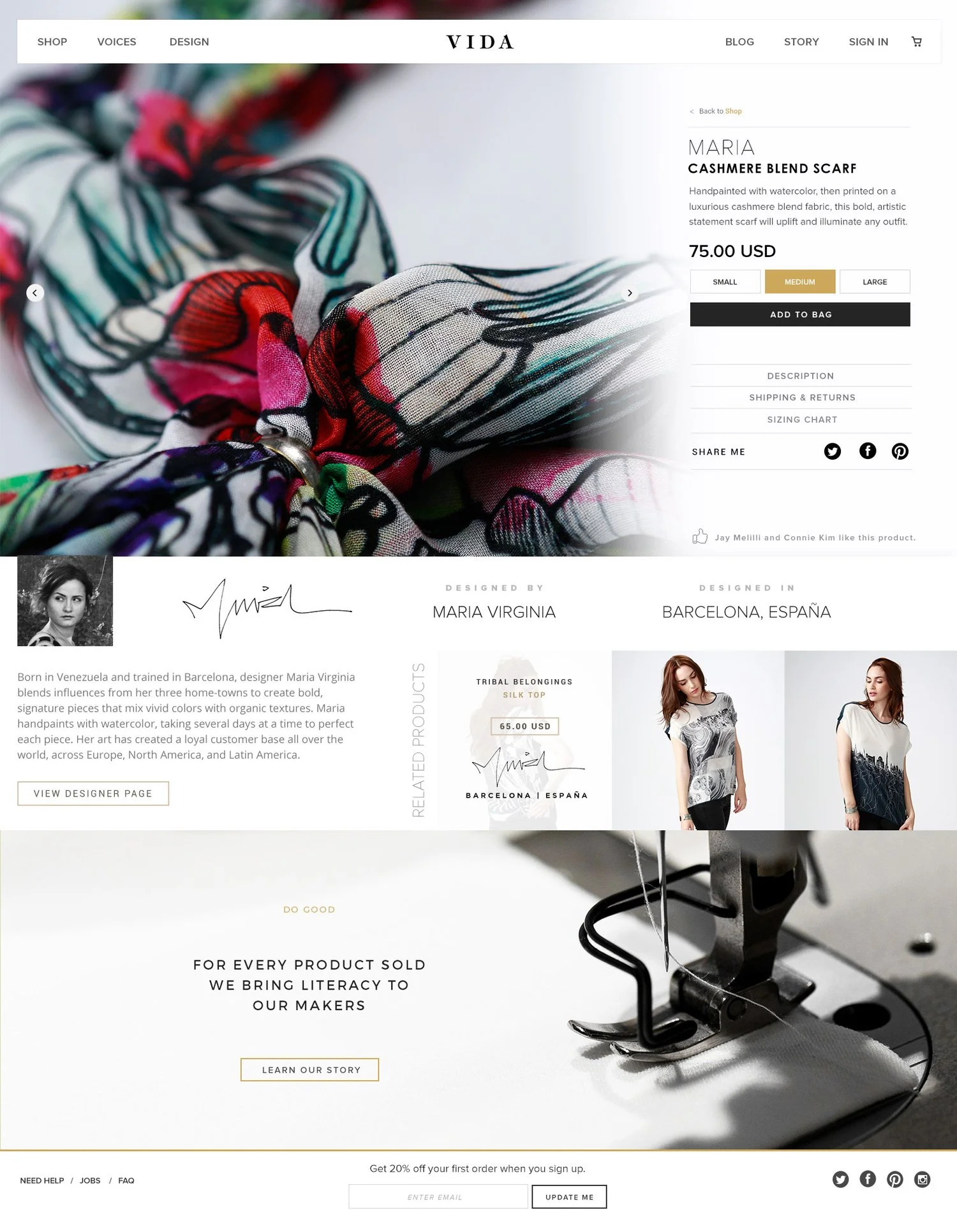 Based in San Francisco, California, Vida is a collaboration between designers and makers around the world that brings original, inspiring apparel and accessories to you - creating beauty every step of the way.